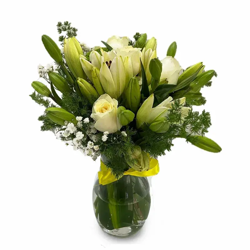 – Arranged in a clear glass vase