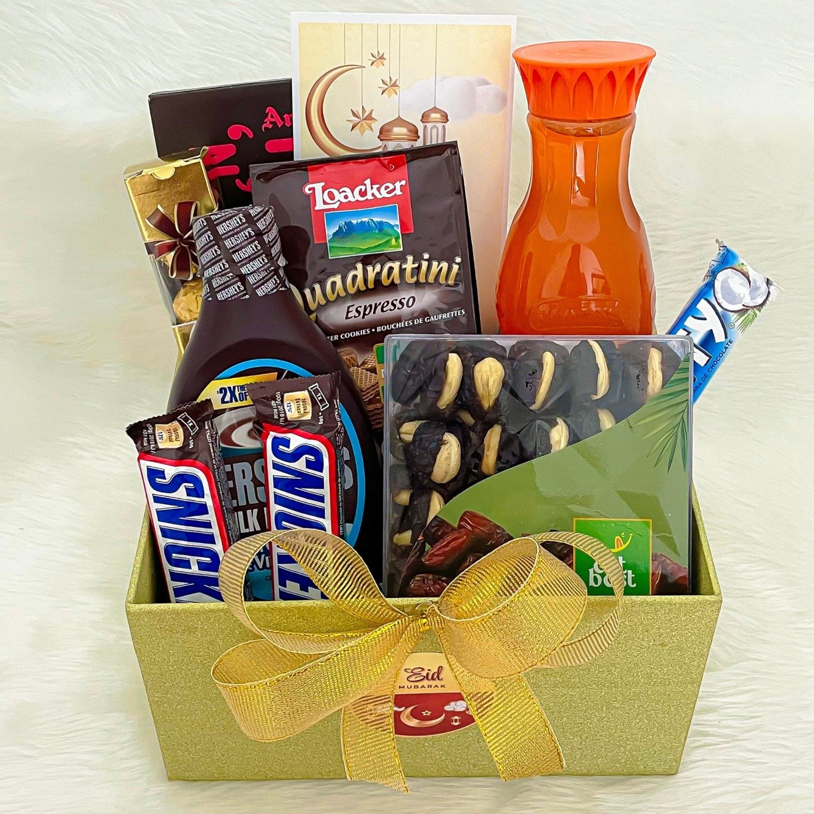Get this beautiful Hamper with dates , bbottle , chocolate , Hershey’s